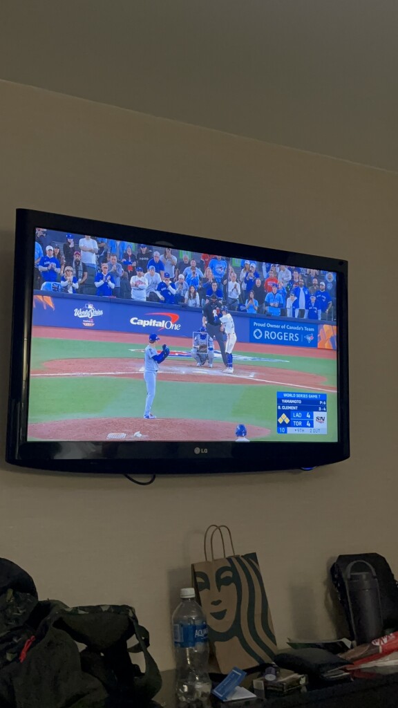 またその日mlbのワールドシリーズの最終戦が開催されておりテレビで観戦しました。カナダ唯一のメジャーリーグのチームがワールドシリーズでオタワでも約一週間はムードがブルージェイズに包まれてました。しかも最終戦まで縺れ込む大激戦だったのですごい緊張感のある試合でした。相手は大谷翔平選手や山本由伸選手、佐々木朗希選手が在籍するロサンゼルスドジャースでしたが、ブルージェイズを応援しました。結果は惜しくも敗戦でしたが歴史的瞬間を目の当たりにすることができてとても光栄でした。