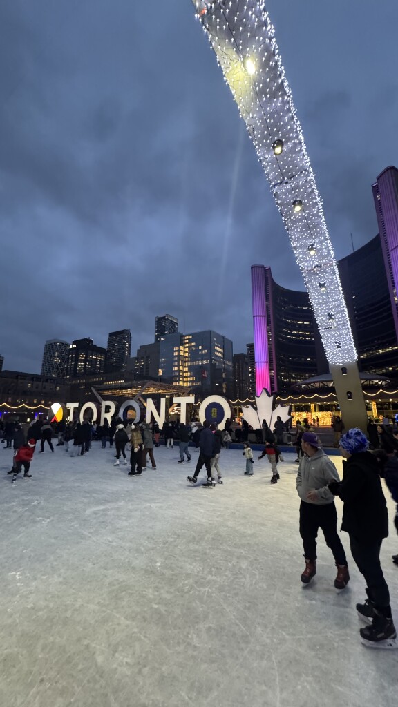 また、トロントの街の中心地には無料で使えるスケート場があるので友人たちとスケートをしました。初めはバランスを保つのが難しかったですが、教えてもらいながら少しだけ滑れるようになりました。しかし、何回もこけたため次の日は体中痛くなります笑